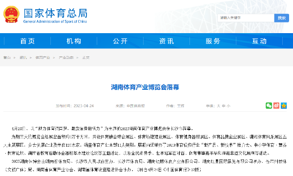 4月21日(ri)—23日(ri),2023湖南體育(yu)產業(ye)博(bo)覽(lan)(lan)會(hui)(hui)在長沙落下帷幕(mu)。本屆體博(bo)會(hui)(hui),是繼(ji)2000年(nian)在長沙舉辦中國(guo)體育(yu)用品(pin)博(bo)覽(lan)(lan)會(hui)(hui)之后,首(shou)次舉辦的本土綜合性體育(yu)產業(ye)博(bo)覽(lan)(lan)會(hui)(hui),無論(lun)(lun)從展(zhan)會(hui)(hui)規模、展(zhan)商(shang)質量還是同期的活動、論(lun)(lun)壇,都有(you)著質的飛躍(yue),全面(mian)闡(chan)釋(shi)了“助力(li)體育(yu)強國(guo)夢,激(ji)發(fa)消費(fei)新活力(li)”的展(zhan)會(hui)(hui)主題,集展(zhan)覽(lan)(lan)展(zhan)示、高峰論(lun)(lun)壇、賽事、表(biao)演、體驗、觀賞為一體,現(xian)場盛況(kuang)空前,精彩紛呈。