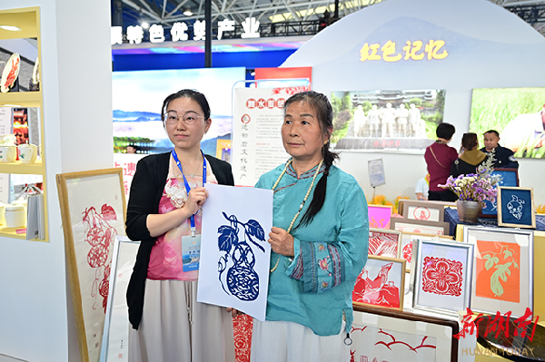 鶴城(cheng)區(qu)非物質(zhi)文(wen)化(hua)遺產——舞(wu)水剪(jian)紙(zhi)第三代傳承人袁(yuan)超(chao)美(mei),正在講解剪(jian)紙(zhi)藝(yi)術。“大家對剪(jian)紙(zhi)非常感興趣,我這幾天忙著介紹(shao),連(lian)喝水的時間都沒(mei)有。”袁(yuan)超(chao)美(mei)說,這次(ci)來參展,主辦方還(huan)設立(li)了直播臺,助力懷化(hua)非遺“出海”。