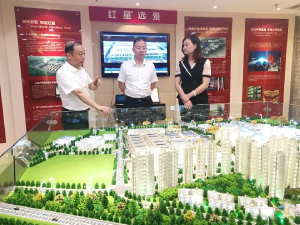 在交(jiao)流座(zuo)談前,貿促(cu)會一行來到紅星(xing)實(shi)業(ye)集(ji)(ji)團(tuan)參觀,羅旭向來訪嘉(jia)賓詳細介(jie)紹了紅星(xing)實(shi)業(ye)集(ji)(ji)團(tuan)的組織架構、發(fa)展(zhan)模(mo)式、發(fa)展(zhan)規劃及子(分)公(gong)司(si)經營領域的相關(guan)情況,萬暉(hui)一行對紅星(xing)的發(fa)展(zhan)表(biao)示肯定和稱贊。
