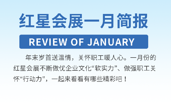 新春(chun)將至(zhi),年味(wei)漸濃,新的一月(yue)承(cheng)載新的使命,新的一月(yue)也必將造就(jiu)新的輝煌(huang),一起期(qi)待紅星會展(zhan)接下來又(you)有(you)哪些(xie)機遇(yu)和(he)挑戰吧(ba)!