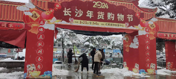 1月22日(ri),受降雪和寒(han)潮影響,展館道路出現積(ji)雪結冰現象(xiang),紅星會展迅速部(bu)署、積(ji)極行動(dong),由公(gong)司場(chang)館部(bu)帶隊(dui)在展館周邊開展鏟雪除冰排隱患,齊心(xin)協力保(bao)障(zhang)年貨節順利開展。