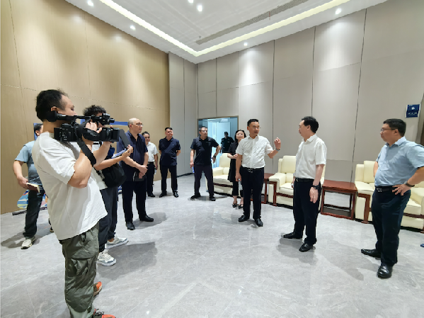8月9日,湖南省商(shang)務廳會(hui)展(zhan)處處長(chang)黃新建一(yi)(yi)行考察永州(zhou)并召開(kai)座談會(hui)議(yi)。永州(zhou)市商(shang)務局領導陪同(tong),公司副總(zong)經理丁貴平攜綜合事(shi)業一(yi)(yi)部相(xiang)關負責人全(quan)程參與。