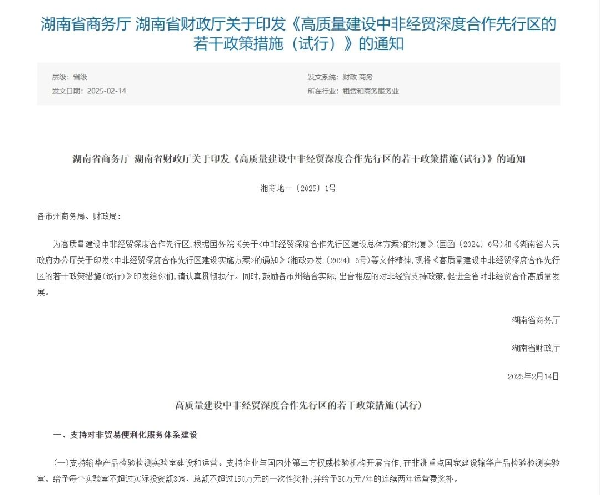湖(hu)南省(sheng)對非政策相關文件