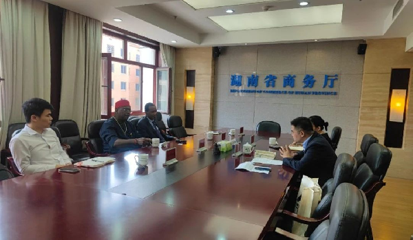 同時組織埃梅卡(ka)主席一行與湖南省商(shang)務(wu)廳、湖南省貿促會(hui)主要(yao)負責人進行拜訪交流(liu)。