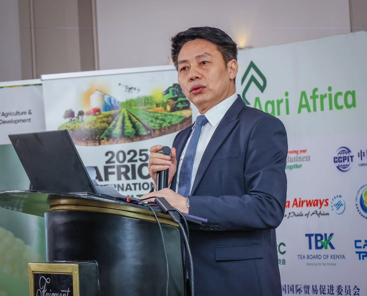 2025年7月29日上午(wu),非洲國(guo)際(ji)(ji)農業(ye)博(bo)覽(lan)會推介會在內羅(luo)畢(bi)費(fei)爾蒙諾(nuo)福(fu)克(ke)酒店順利(li)舉行。肯(ken)(ken)尼亞(ya)國(guo)務(wu)院農業(ye)部首席(xi)秘書Kipronoh Ronoh Paul博(bo)士、埃塞俄比亞(ya)駐(zhu)內羅(luo)畢(bi)大使館副團長德梅克(ke)·阿特納(na)夫(fu)、肯(ken)(ken)尼亞(ya)茶葉局局長威利(li).穆泰等政要;肯(ken)(ken)尼亞(ya)國(guo)家(jia)(jia)工(gong)商聯、法國(guo)投資署、羅(luo)馬尼亞(ya)駐(zhu)肯(ken)(ken)大使館、香港貿易(yi)發展(zhan)局、肯(ken)(ken)尼亞(ya)航空公司、標準集團有限公司等60余(yu)家(jia)(jia)政企單(dan)位;人民日報、新(xin)華社、肯(ken)(ken)尼亞(ya)新(xin)聞(wen)頻道(KTN News)、K24 Digital頻道、standardmedia、Citizen TV Kenya、GCTN等10余(yu)家(jia)(jia)國(guo)際(ji)(ji)媒體派代(dai)表出席(xi)。會上正(zheng)式向全(quan)球(qiu)發布非洲國(guo)際(ji)(ji)農業(ye)博(bo)覽(lan)會將于2025年10月28日-31日在肯(ken)(ken)尼亞(ya)內羅(luo)畢(bi)KICC召(zhao)開。